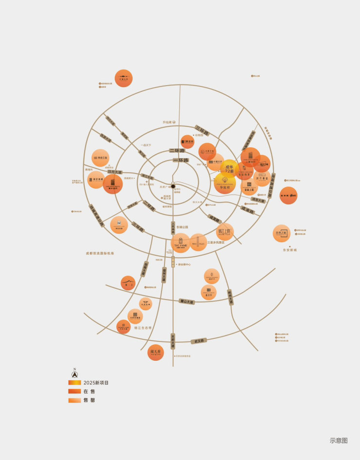 、成洛大道、蜀都大道等4大都邑主干道双TOD交通合键:紧邻二环道、中环道;线大地铁线道交叉2/4/7/8号;站、万年场站等3地铁站近临槐树店站、迎晖道,明白万象;